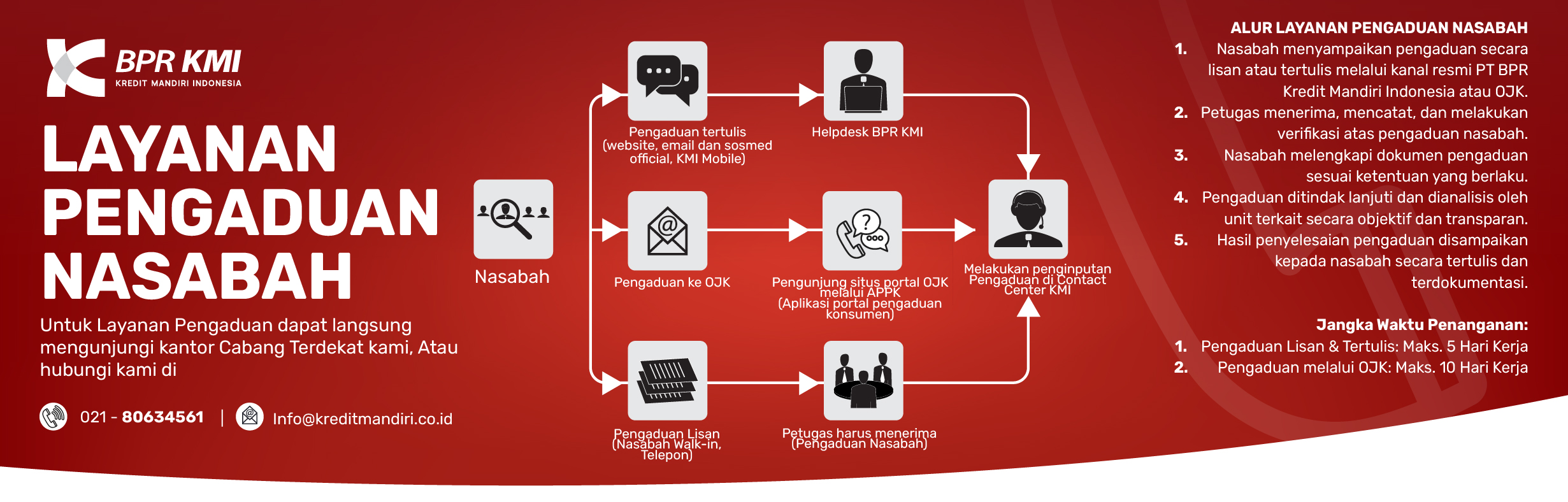 Kami menghimbau kepada masyarakat agar berhati-hati dan mewaspadai adanya modus penipuan dalam proses penerimaan calon pekerja yang mengatasnamakan PT BPR Kredit Mandiri Indonesia. Hal-hal penting yang perlu diperhatikan diantaranya adalah komunikasi yang bukan berasal dari alamat surel PT BPR Kredit Mandiri Indonesia (misalnya, dari alamat surel berakhiran yahoo.com); ditulis menggunakan bahasa Inggris yang buruk; meminta pembayaran uang pada tahap tertentu.